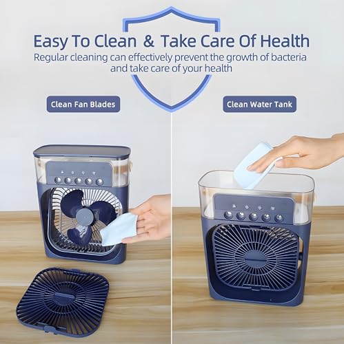 Energy Saving & Easy to Disassemble – The personal air fan operates at a low energy consumption, please put it beside you not over than 3ft-4ft. Comes with high quality ABS fan blades and removable design helps you more easily to clean the water tank, place ice cubes and cleaning fan blades.