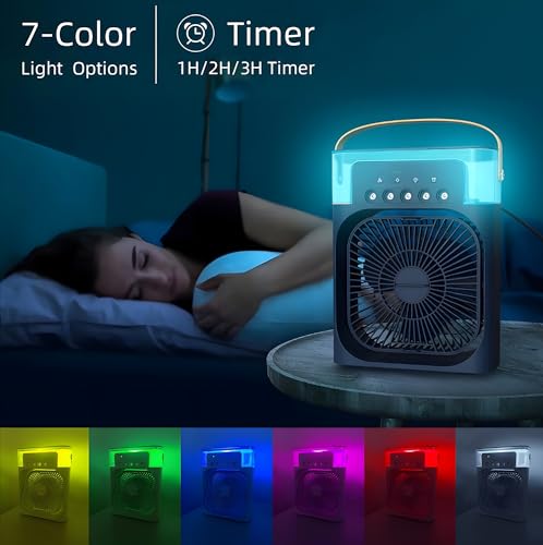 24×7 eMall Black Big Portable Mist Fan, Cooling Fan LED Light, Air Conditioner Water Fan USB Desk with 3 Mist Spray Personal Evaporative Air Cooler Ice Fan for Bedroom, Office, Dorm Work