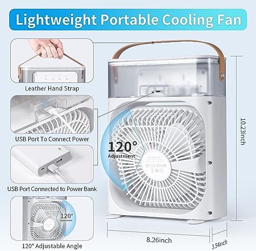 Portable Mini Size & Easy to Use – This portable air conditioner fan is design with mini size of length 7.87″, width 3.34″, height 10.23″, and equated with 1.5m USB cable, which you can charge anywhere by simply connecting to a device that supports a USB port, provide a more convenient life for you. And unique leather handle design, which is stylish and durable, easy to carry, perfect for outdoor camping, picnic, travel, home, office, etc. A great summer gift for your family or friends!