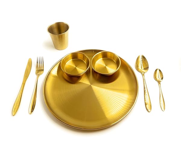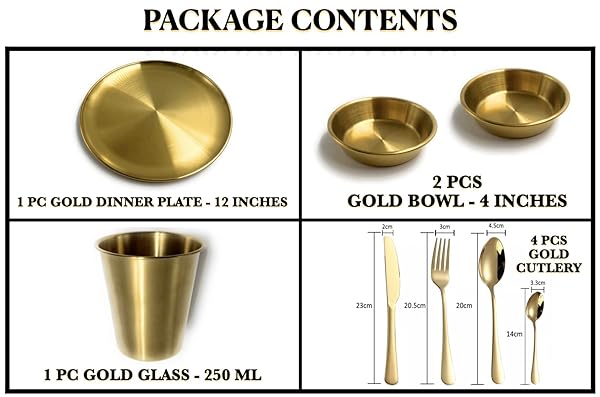 24×7 eMall Gold Dinner Set Cutlery Gold Plate Gold Bowls and Glass Complete Golden Meal Combo Steel