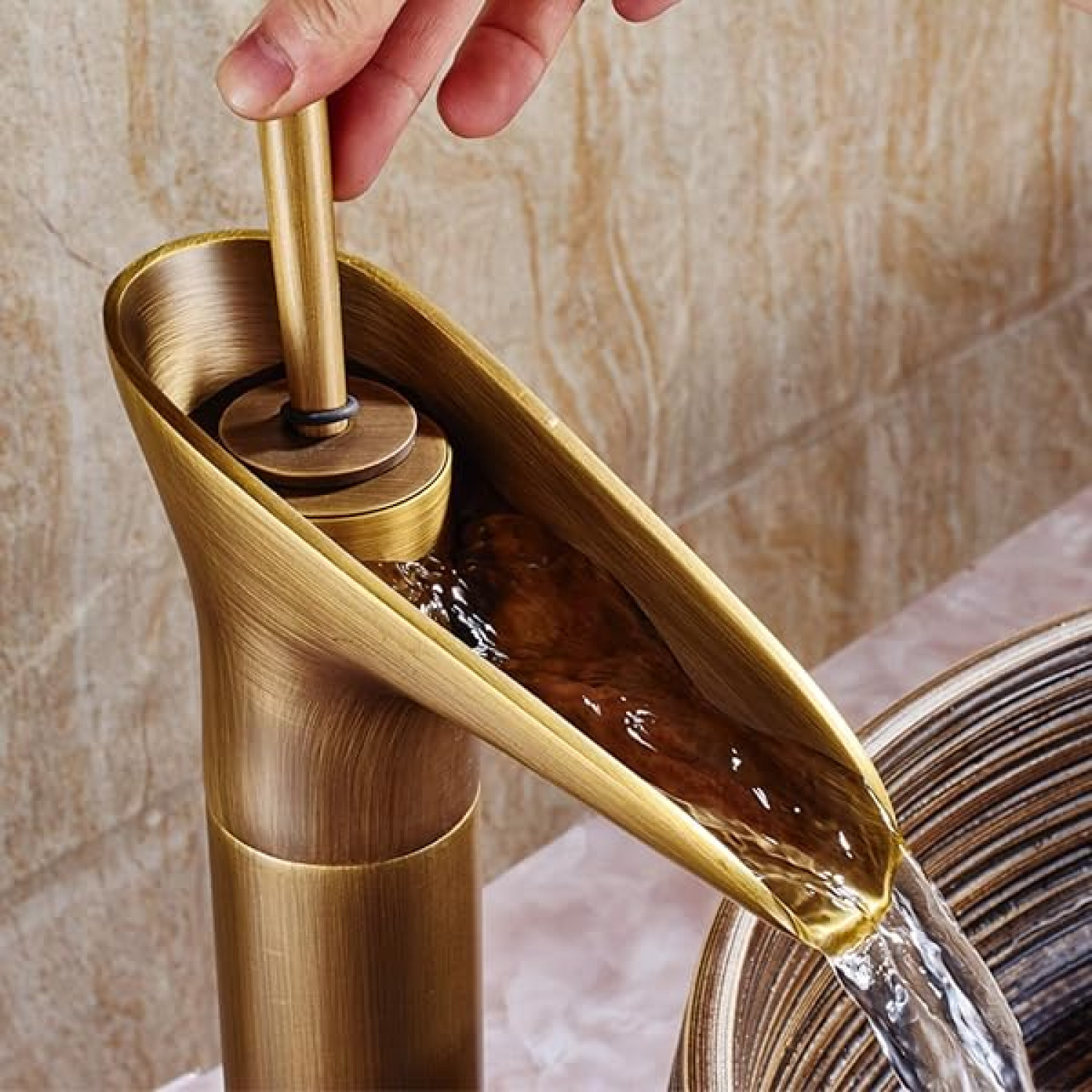 24×7 eMall Gold Waterfall Basin Mixer Hot and Cold, 7 Inch Height, Golden Colour (El Dorado Petite)