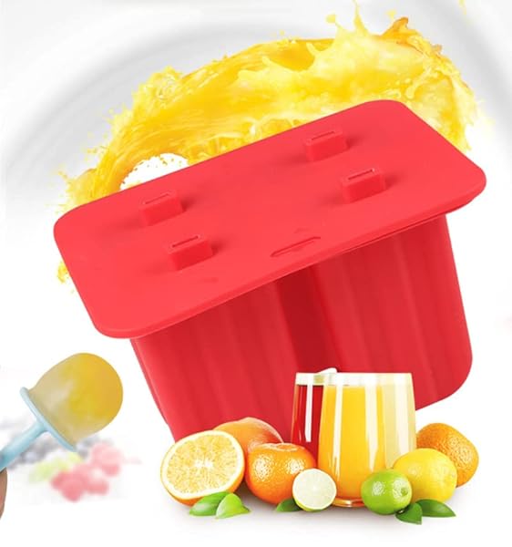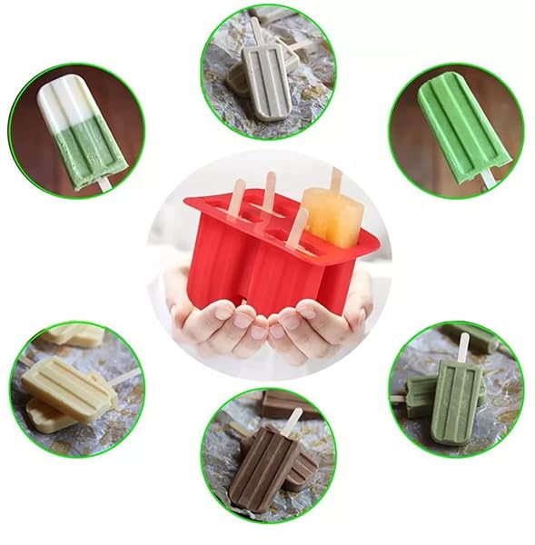 24×7 eMall Ice Pop Moulds, 4 Cavity Food Grade Silicone Frozen Ice Popsicle Kulfi Maker with Sticks, BPA Free, Kitchen Tools, Red, Ice Cream Moulds