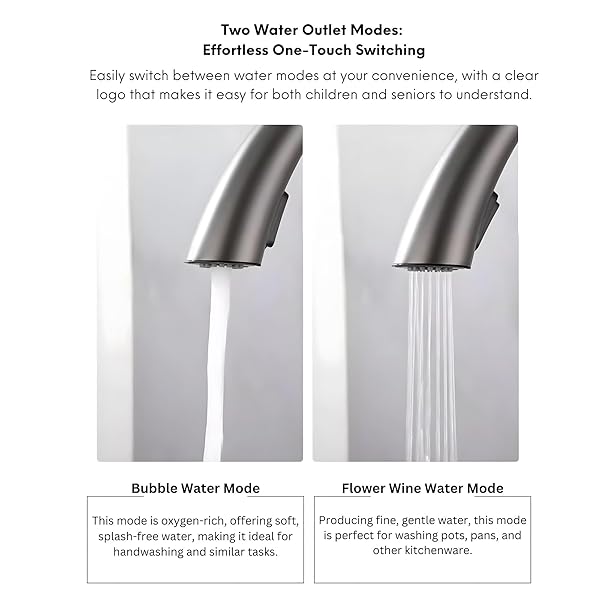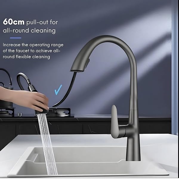 Single forward facing lever handle is simple to use and easier to temper water. With pullout & pulldown silicone tube which can be cleaned using almost all daily detergents