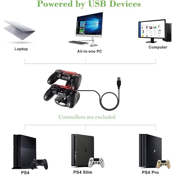 This dual charger provides an easy and quick way to charge and store your PS4 / PS4 Pro / PS4 Slim Controller.