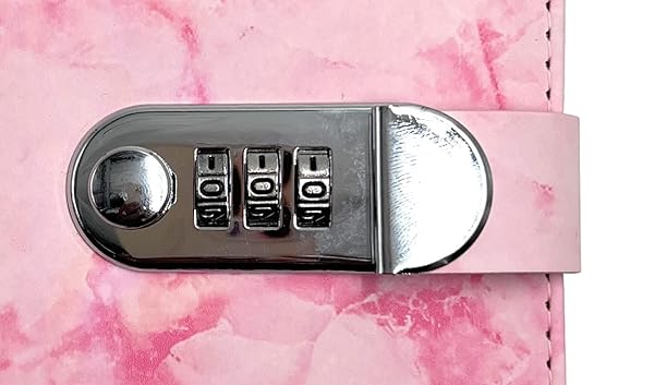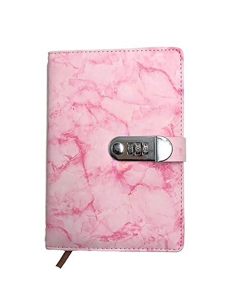 24×7 eMall Lock Diary Notebook with Number Lock Combination PU Leather Pink Marble Design Cover 22×15 cm, 230 Pages