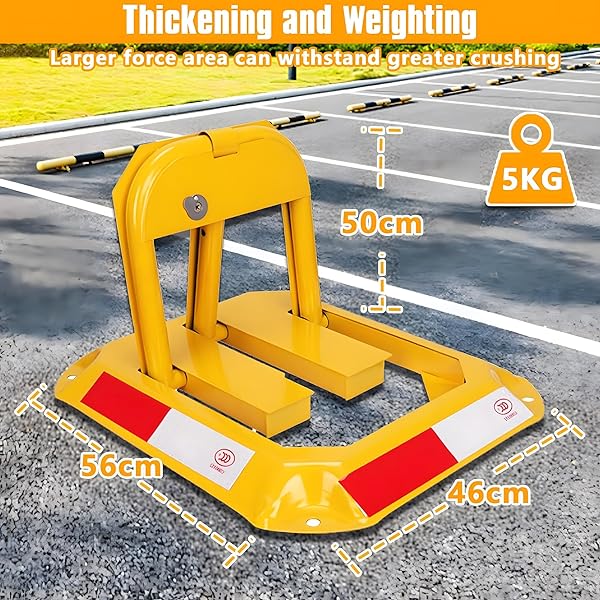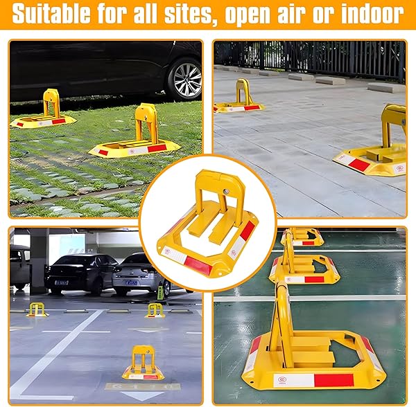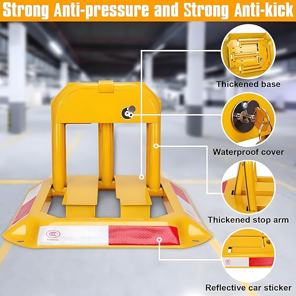 Visible and Secure : Bright yellow color and reflective stickers ensure high visibility, deterring unauthorized parking.