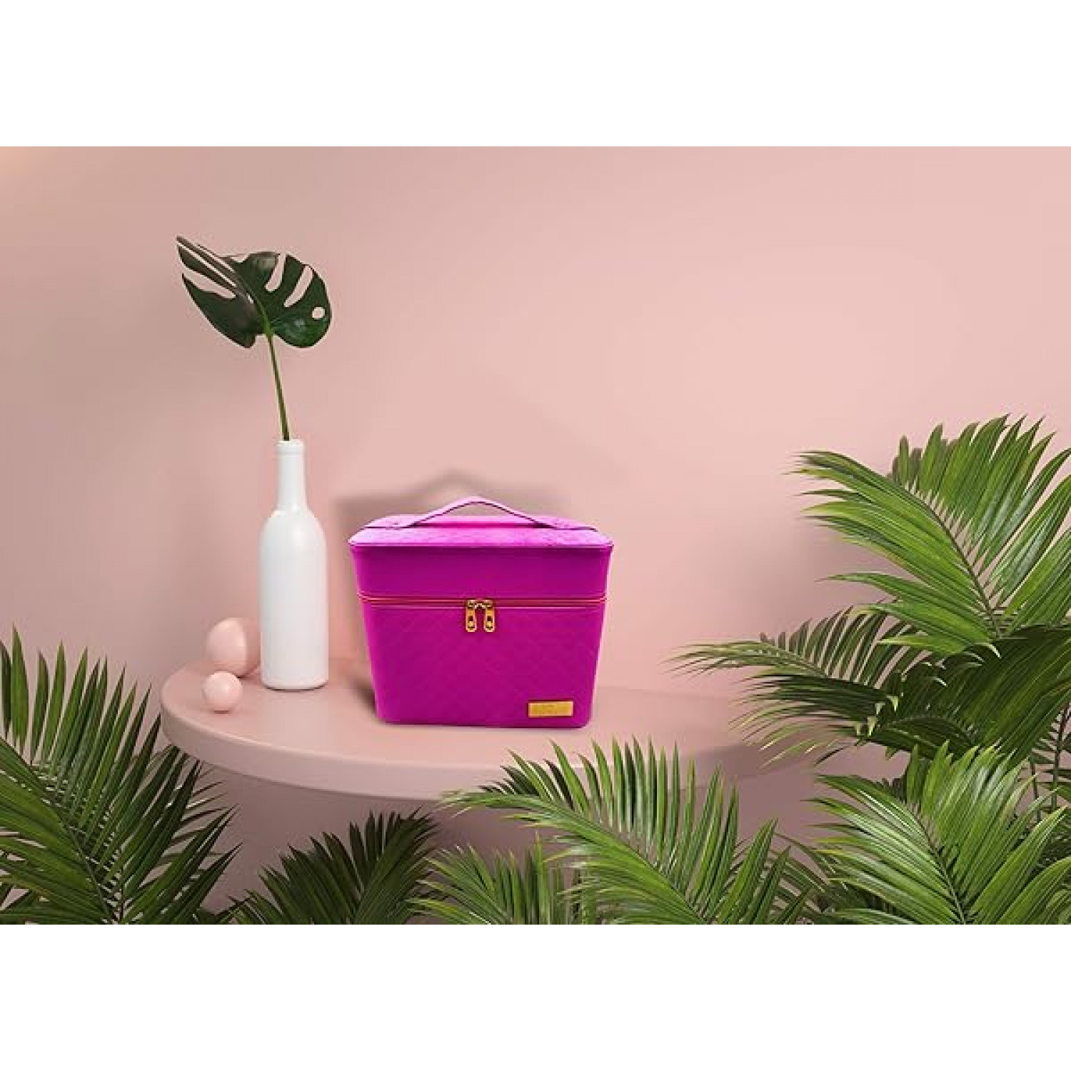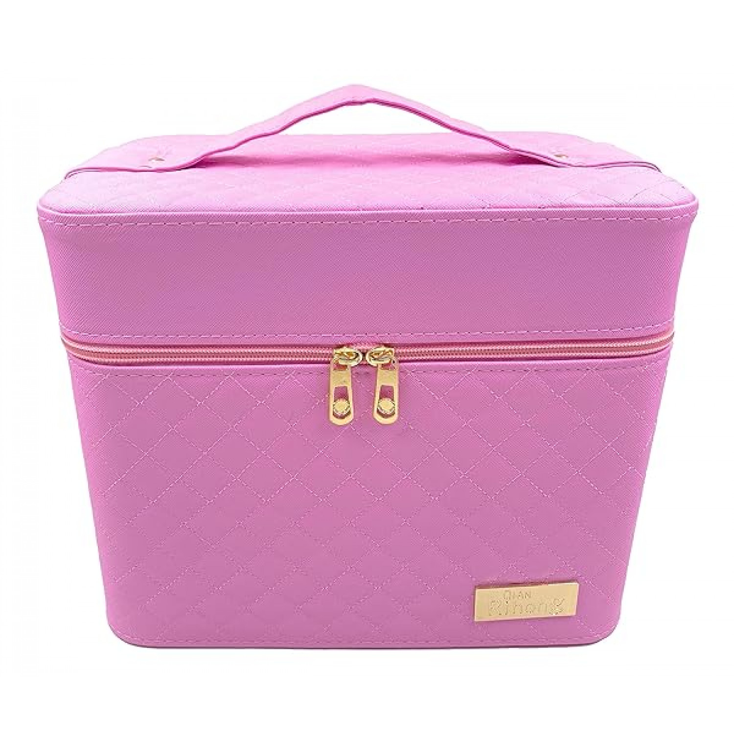 24×7 eMall Women's Fabric Professional Beauty Make Up Nail Cosmetic Box Vanity Case 28 X 23 X 19cm (Pink)