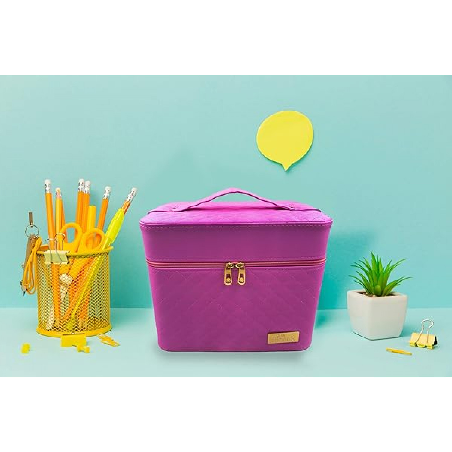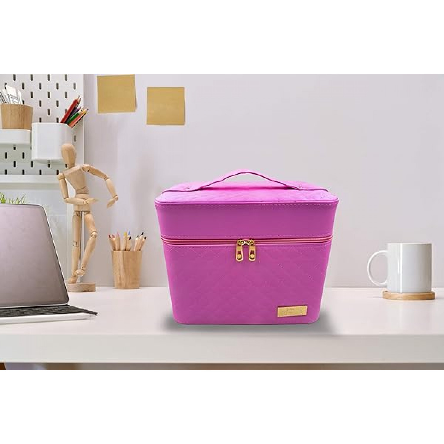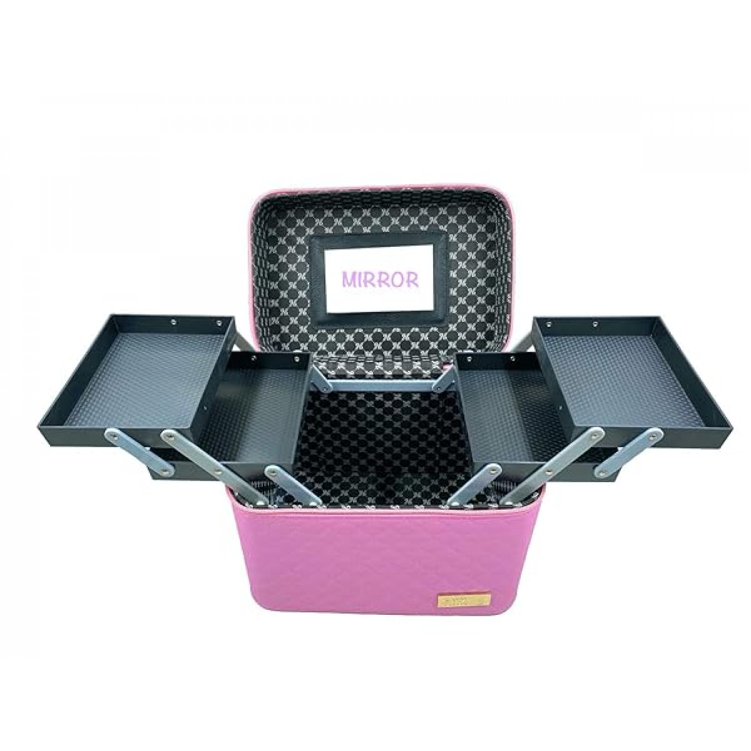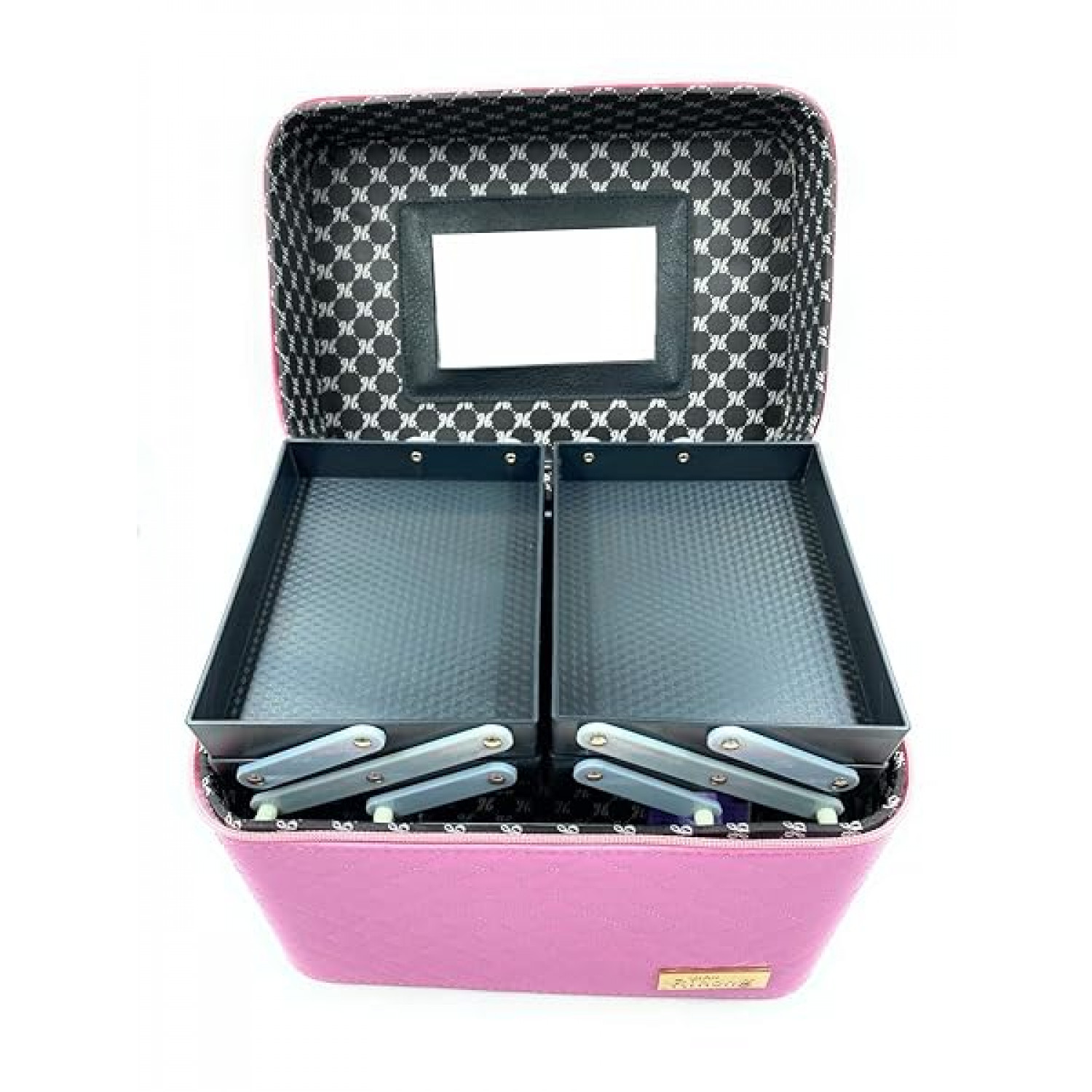 Modern design cosmetic bag. Retractable sectional inner trays makes organizing your stuff easy
