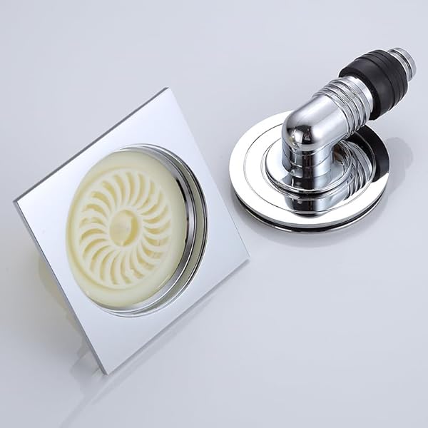 AQUAKART 4 x 4 Inch Washing Machine and Dish Washer Floor Drain – Silver with Chrome Finish – Floor Trap for Bathroom, Kitchen – Anti Clogging & Anti Pests.