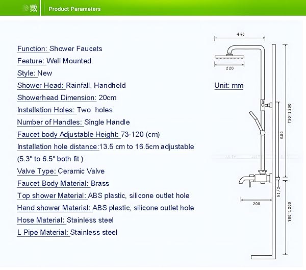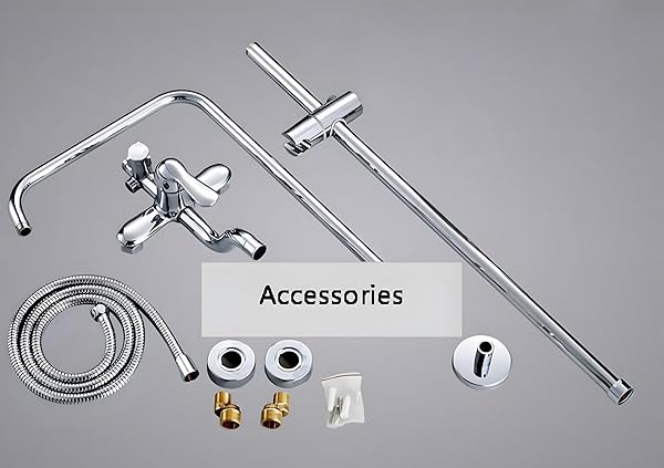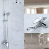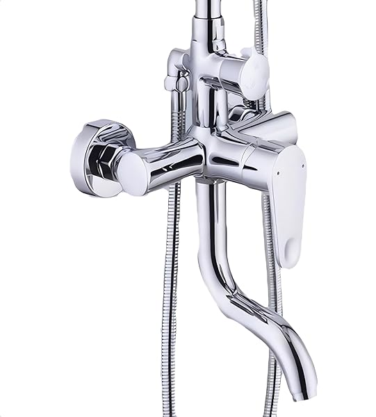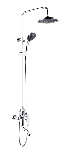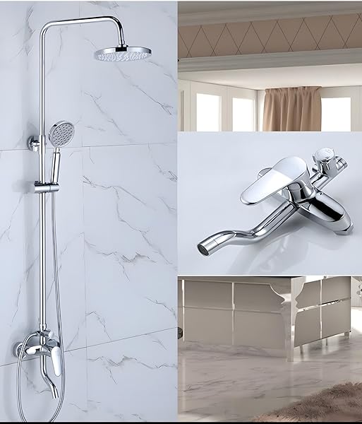 AQUAKART Brass Shower System, 3 in 1 Wall Mixer with 3 Control Setting. Adjustable Height Shower and Hand Shower Complete Bath Set Silver Chrome