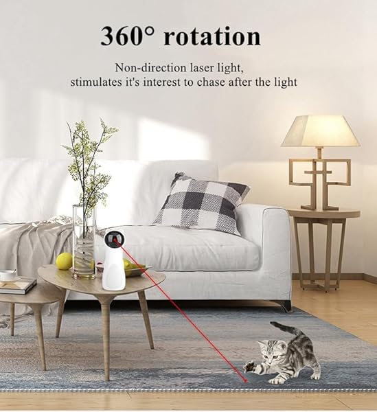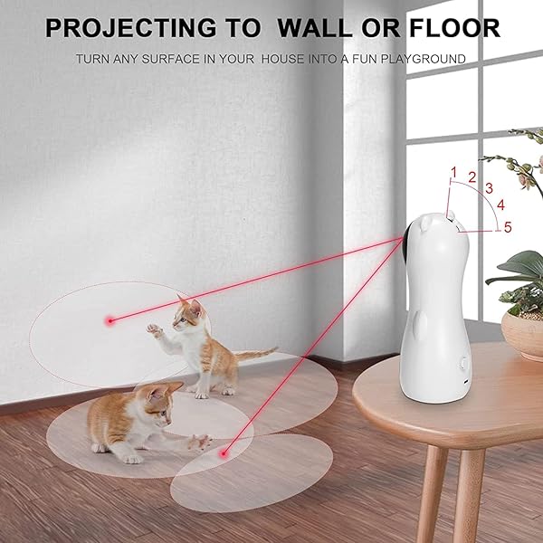 Adjustable Circling Ranges – The exciting pet laser toy rotates in a random 360 degree pattern across floors which appeals to the natural hunting instinct of cats. it will forms an large play area for your pet to play. Projection to the wall or floor can be adjusted at any angle, turning the house into a fun cat playground.