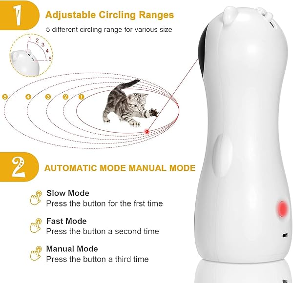 Adjustable 3 Speeds Modes – Choose slow, fast, . Pick the one that pleases and suits your cat. Older cats may respond better to slow while young, energetic cats prefer fast or random. Helps your cat maintain his or her natural hunting skills. Improves mood, temperament, and appetite.