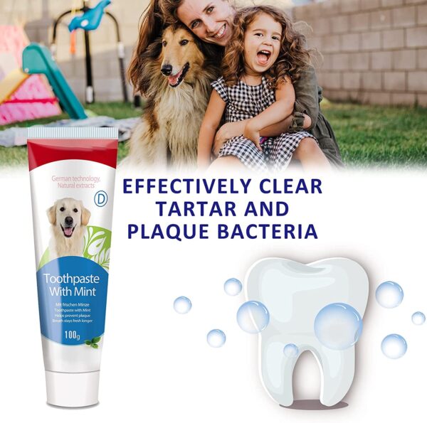 - FRESHENING BREATH - dog toothpaste can help clean the dog food residue. Using dog toothbrushes and toothpaste is the best way to eliminates bad breath. You will see their pearly white teeth when you play with your pets