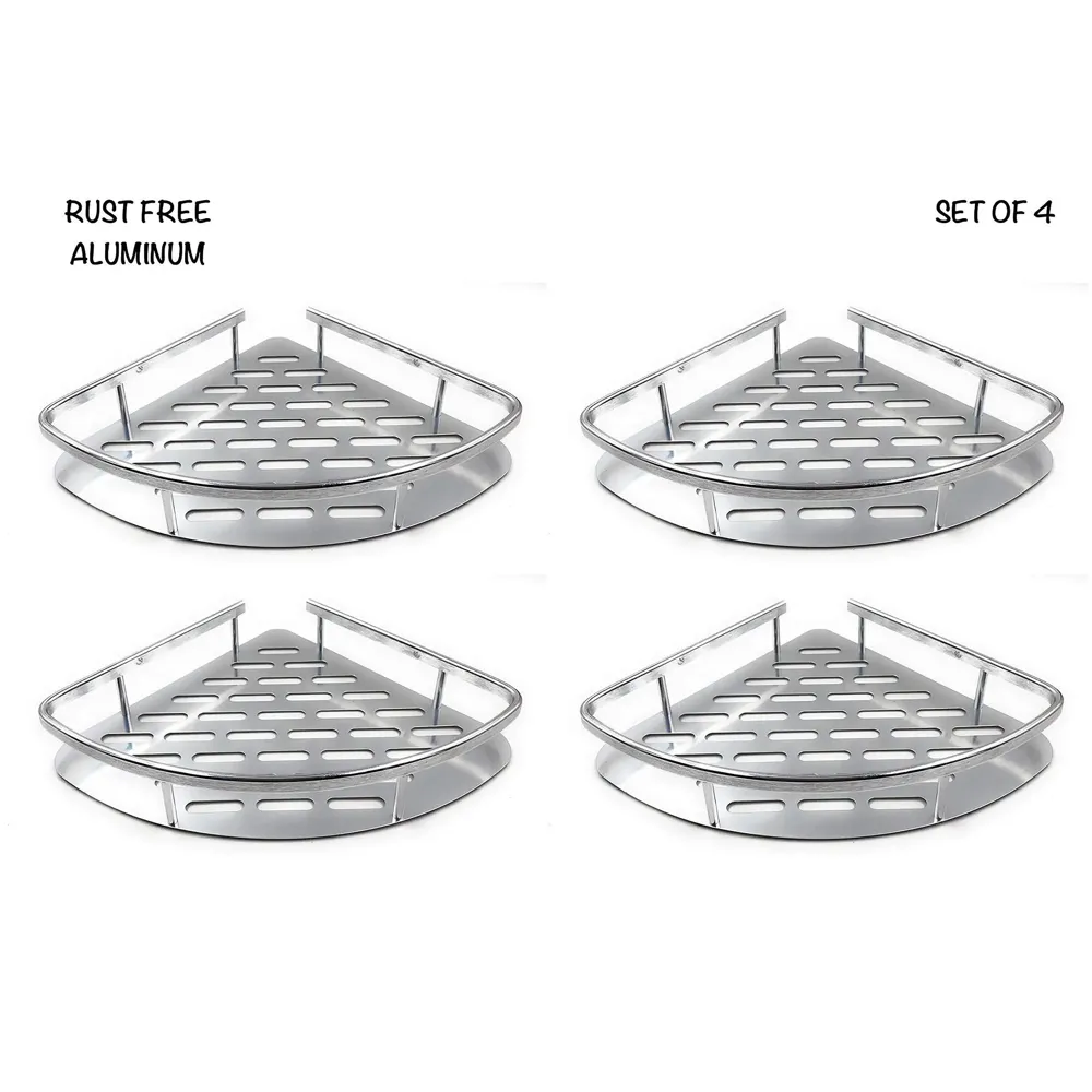 - 1. Set of four rustproof aluminium corner shelves for a comprehensive, multi-level bathroom storage arrangement.