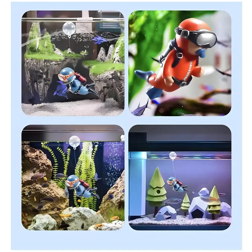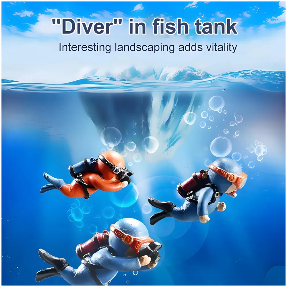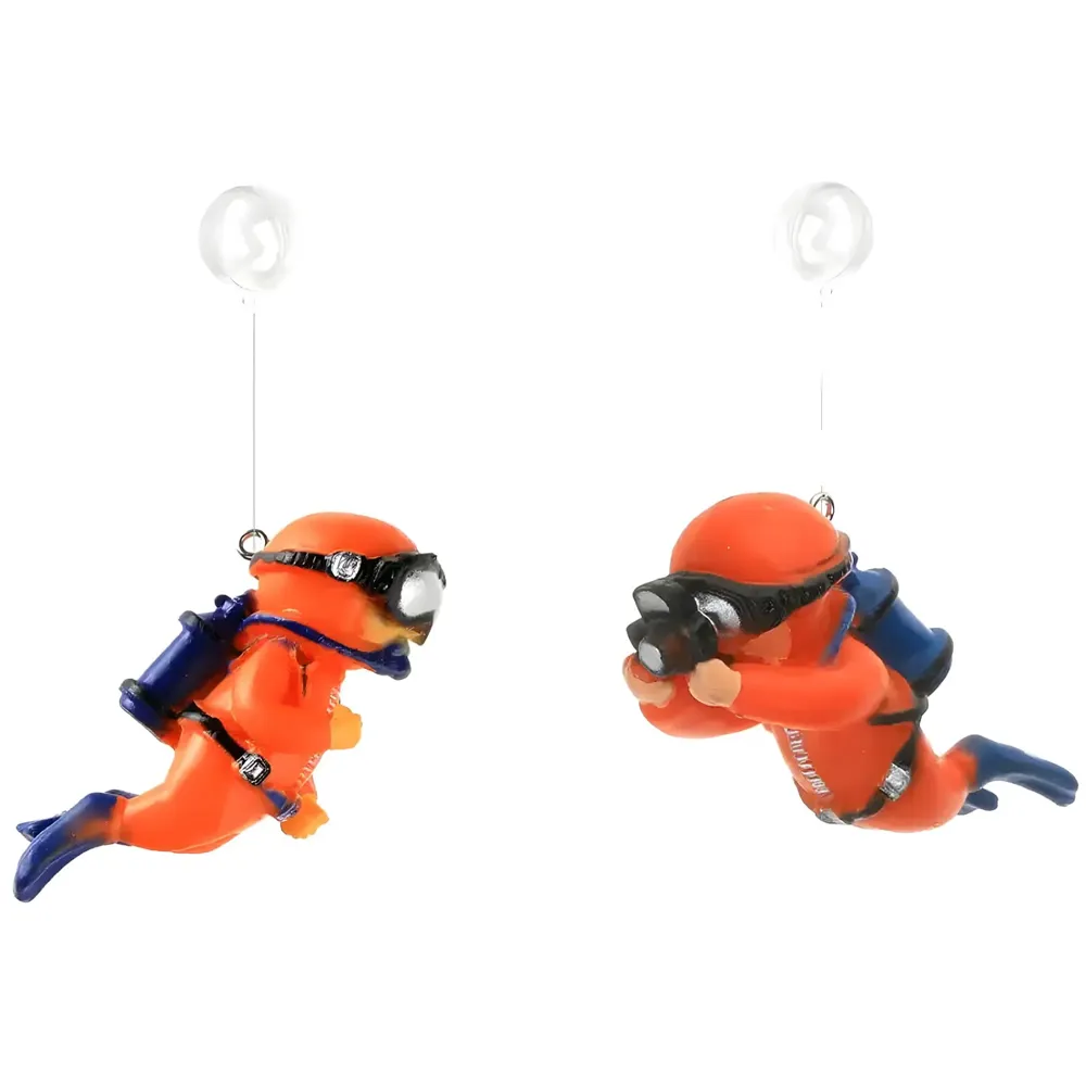 - CUTE AQUARIUM DIVER ORNAMENT - Is there a more effective aquarium ornament than a cartoon diver floating in the water? You can create a charming and colourful scene in your aquarium by adding two floating, toonish miniature divers to the gorgeous swimming fishes.