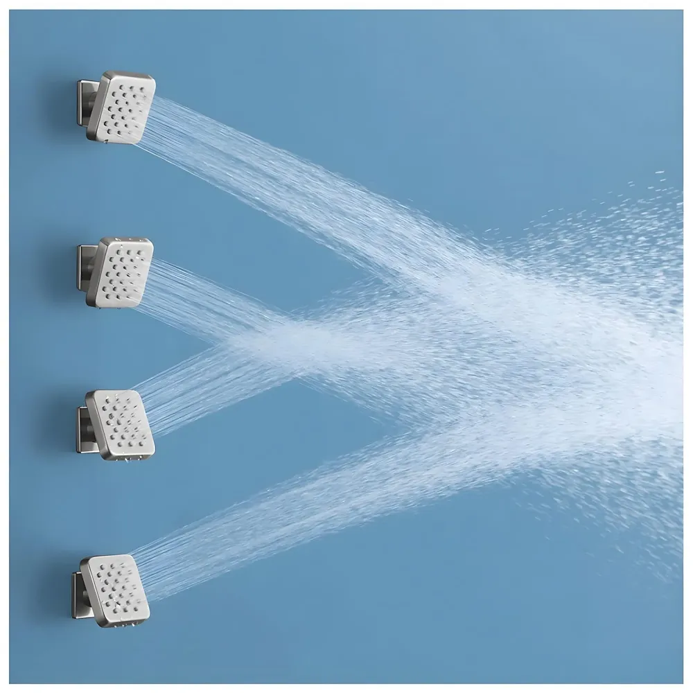 - 4. Adjustable heads let you direct the spray to shoulders, back, or lower body.