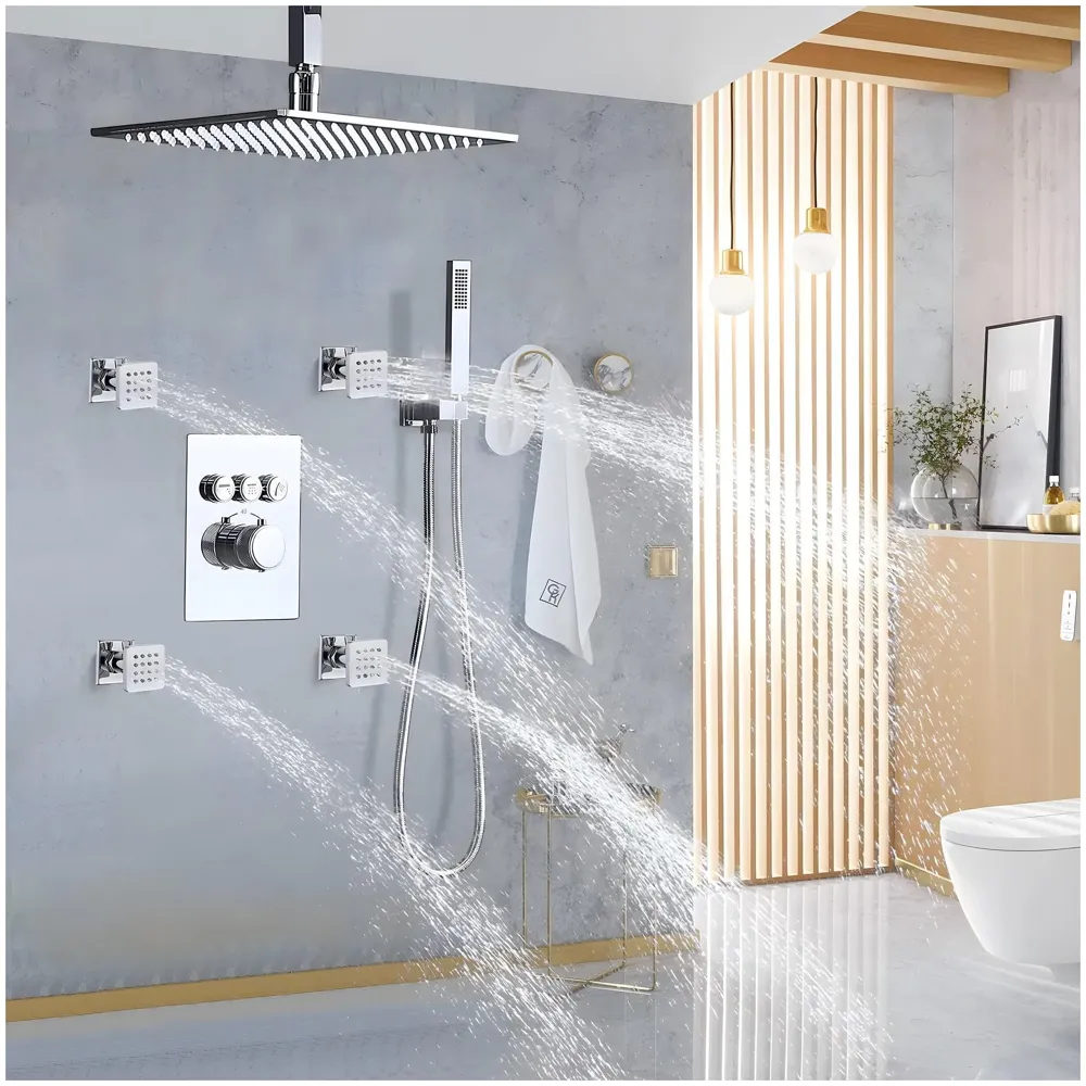 - 1. Set of 2 chrome body jets for wall-mounted shower panel or system installation.