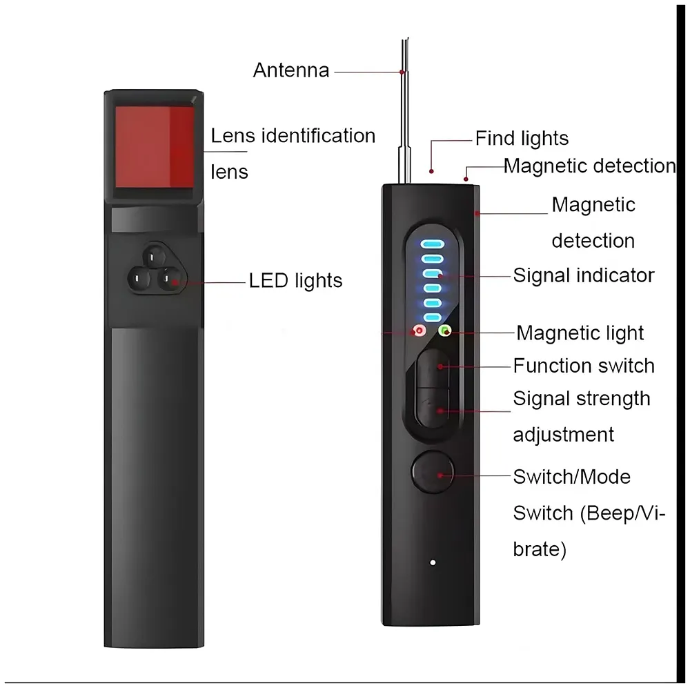 - Privacy and Security: This product adopts passive, wireless, and infrared scanning technology, which can accurately detect: eavesdropping, telephone eavesdropping, eavesdropping, GPS tracking device, car eavesdropping, wireless camera, wired camera, electric radiation source, etc. Can effectively prevent your privacy from being leaked