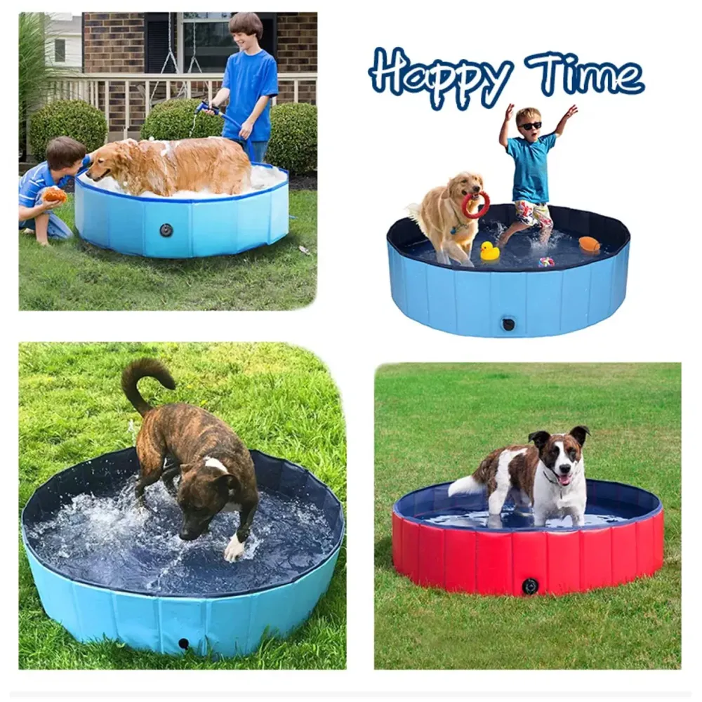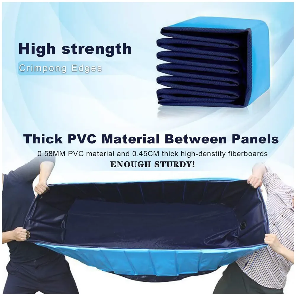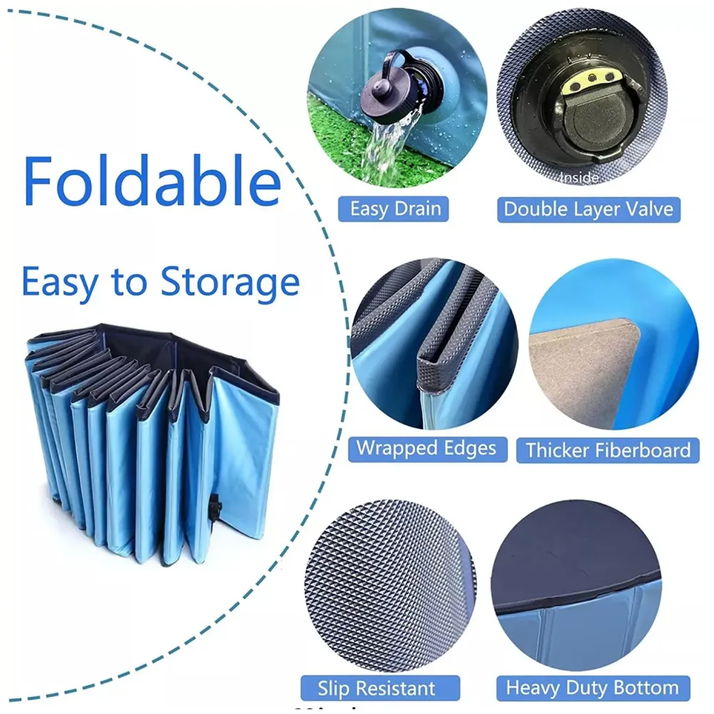 - 2. All blue foldable pet pools are verified for wall rigidity, drainage adapter inclusion, water-tightness, and size specifications.