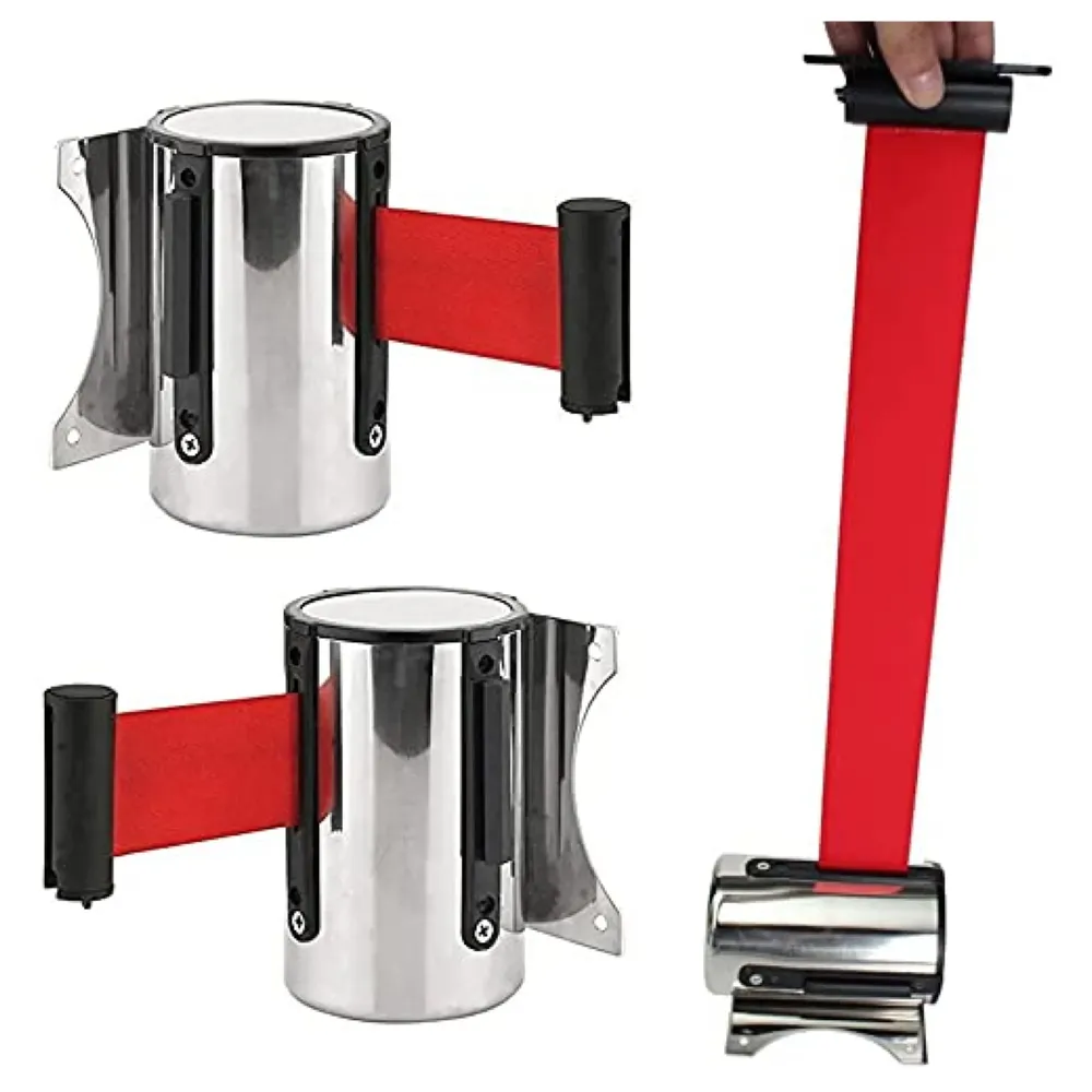- •Retractable Ribbon Barrier/ Wall Mount Ribbon- Stainless steel housing, Nylon Retractable Ribbon, polished after multi-channel processes. Nylon webbing is more firmly clincher, Perfect for use in shops/ exhibitions/ hotels/ clubs/ bars/ restaurants. The Barrier Belt are perfect for placement across doorways and corridors/ Perfect for aisle ways/ warehouse racking/ checkout stands/ roll-up doorways/ garage door entrances etc.