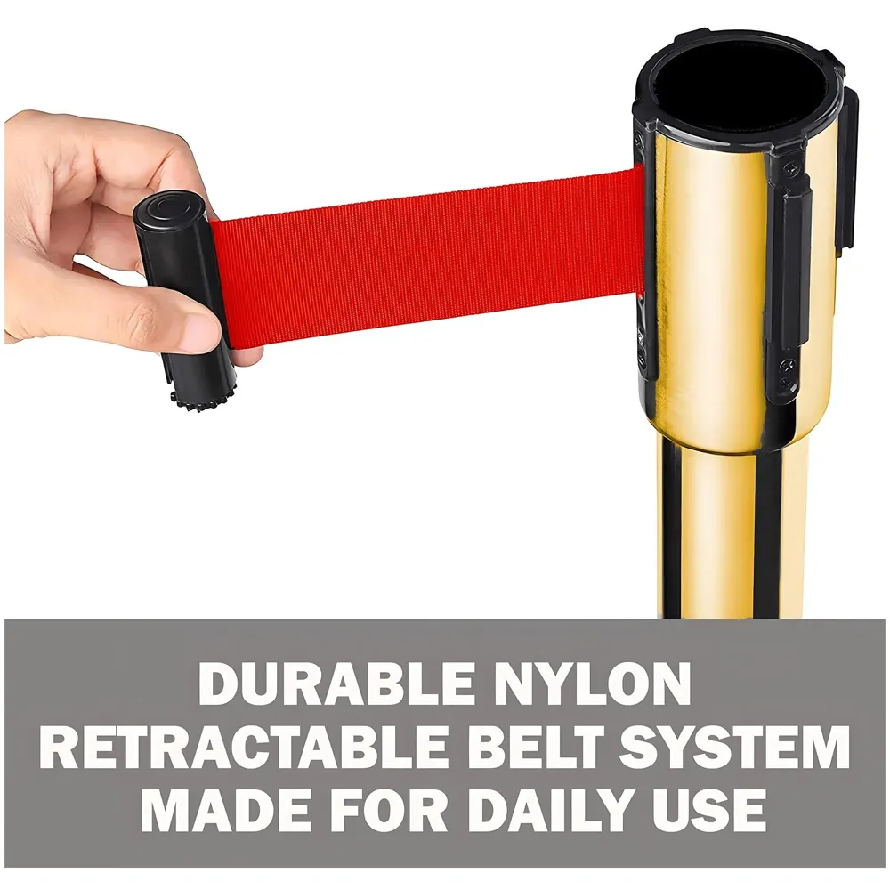 - Multi-Use Crowd Control Retractable Belt, Retractable Safety Wall Queue Barrier - This Retractable Ribbon length is 10 Feet (3 Meters). The high flexibility of the length makes it the most convenient tool to help control the traffic flow. Applicable to multi occasions, Use for Crowd control/ banks/ airports/ sports and entertainment arenas/ county fairs/ college registration and any crowded places where it requires a line or if there is any restricted area.