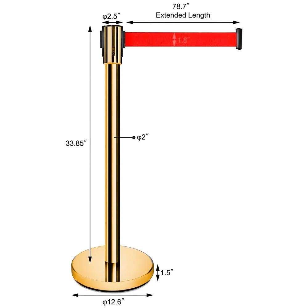 - Stainless Steel Post: The gold stanchions are constructed by 201 stainless steel post and zinc alloy ball, which is durable, anti-corrosion, and not afraid of high temperature. As a result, our post can be applied to the outside and inside because the material is waterproof and rustproof. Overall Height: 37.8 in / 96 cm; Pole Wall Thickness: 0.03 in/0.8 mm.