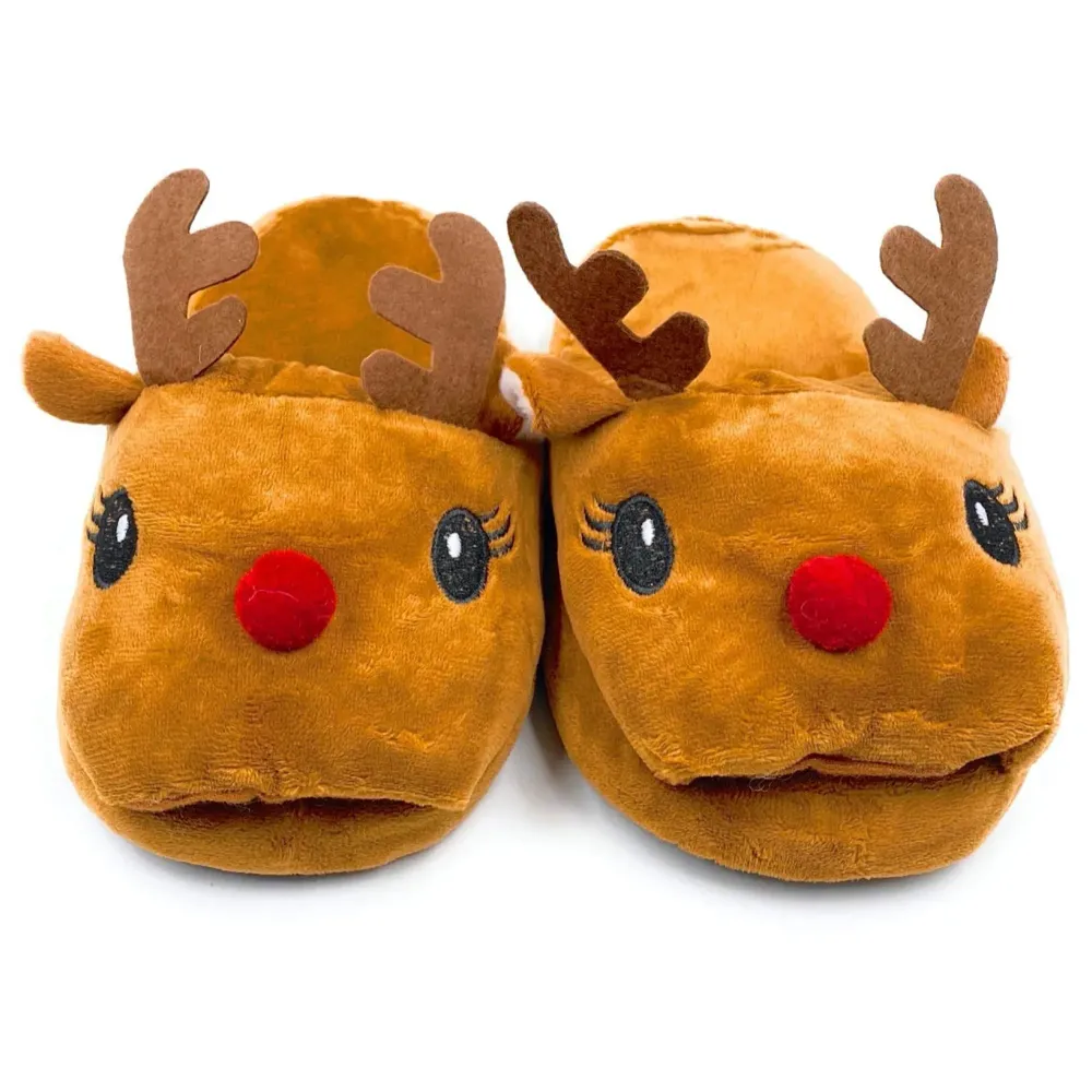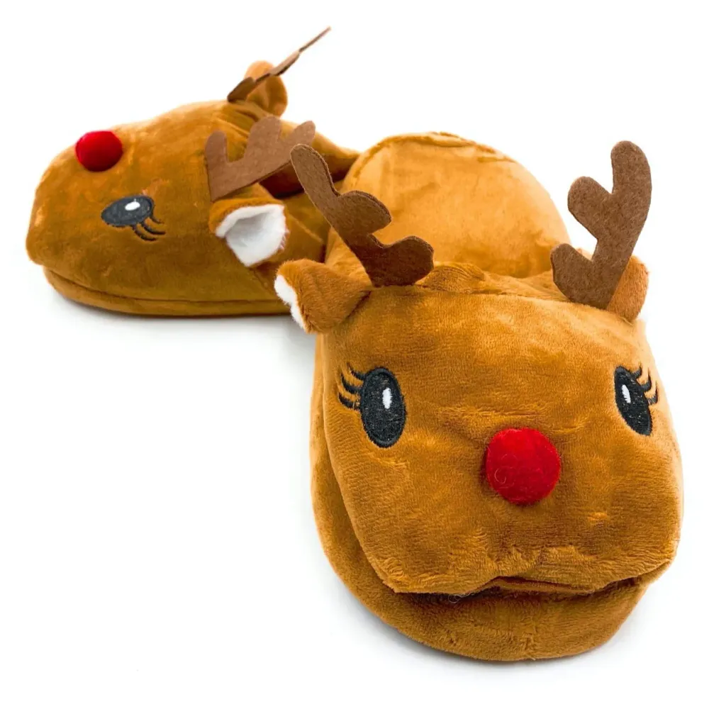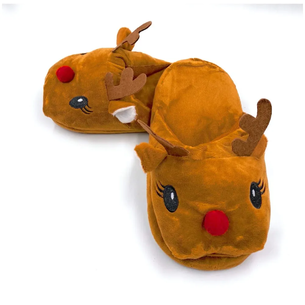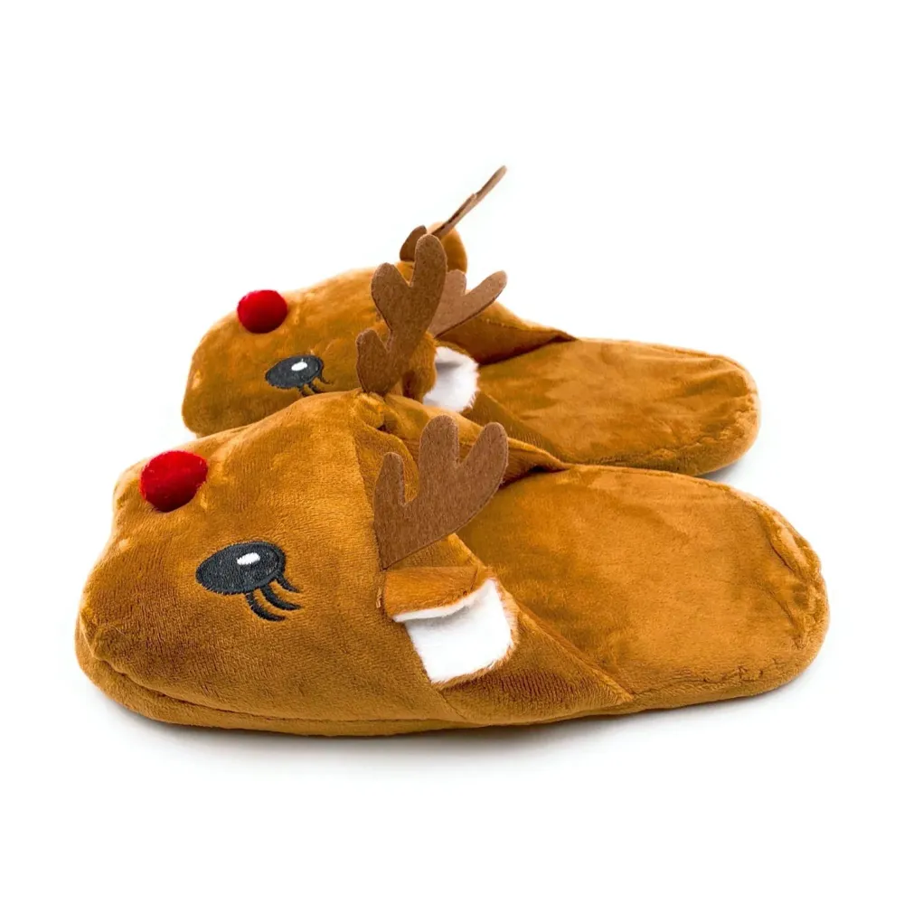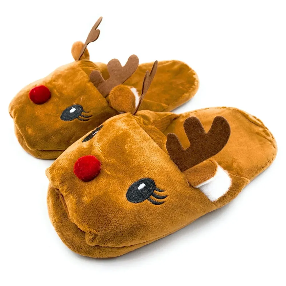 - 1. The reindeer character design makes these slippers a popular festive gift for Christmas, winter birthdays, or holiday celebrations.
