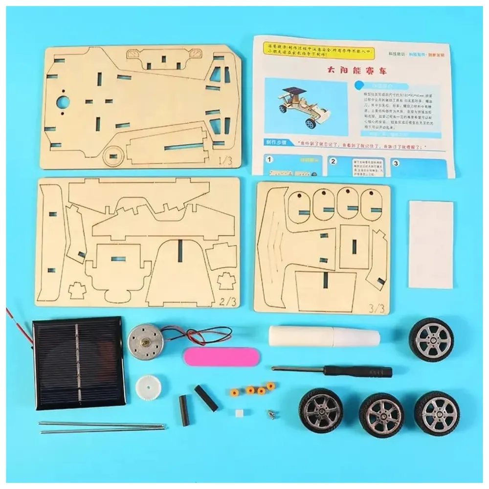 - 2. Includes all required components: chassis, solar panel, motor, wheels, and assembly instructions for children.