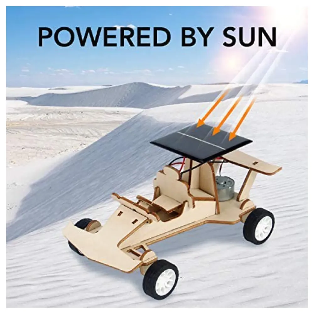 - 1. Solar-powered DIY race car kit teaches children about renewable energy through hands-on assembly and play.
